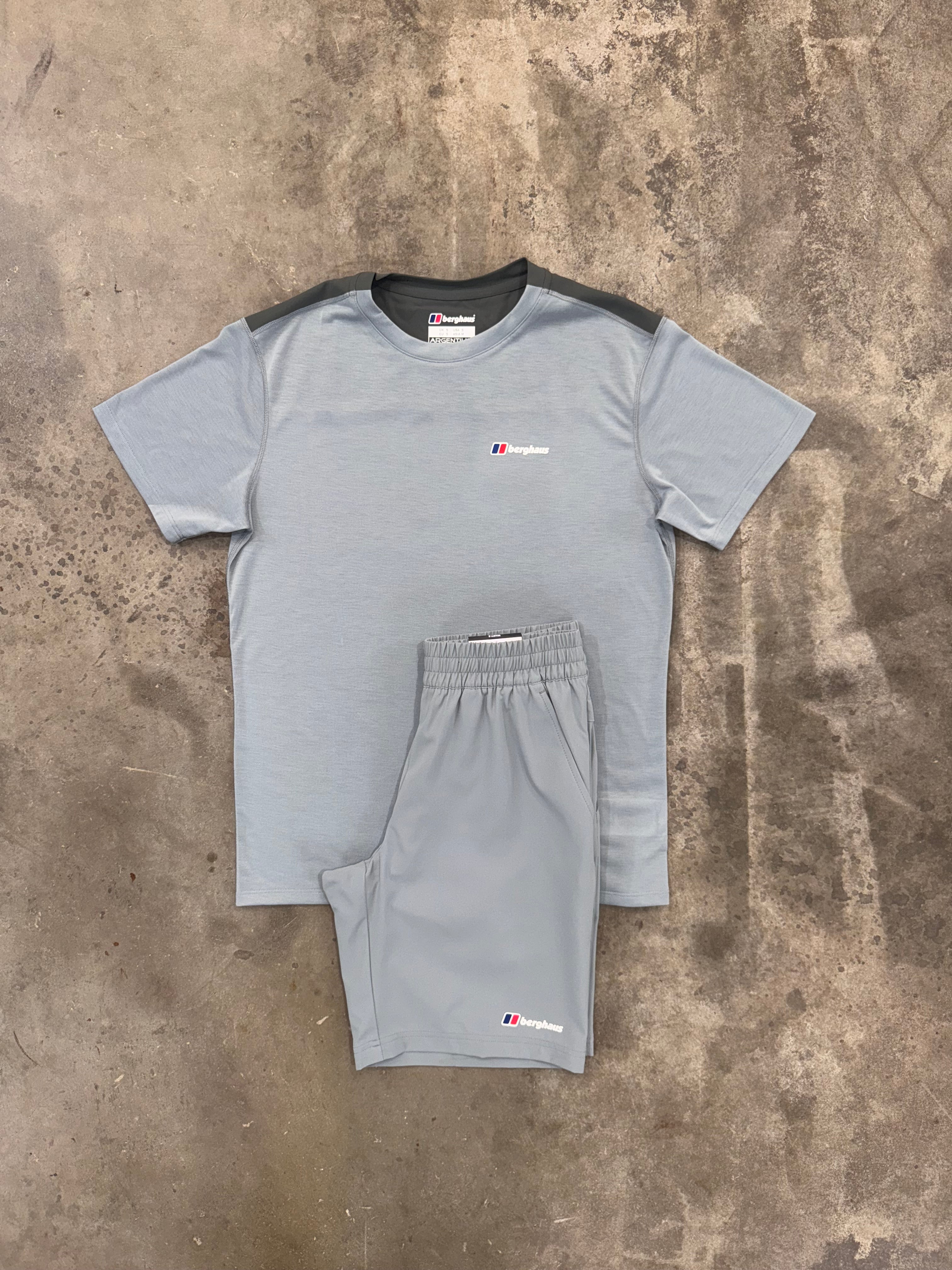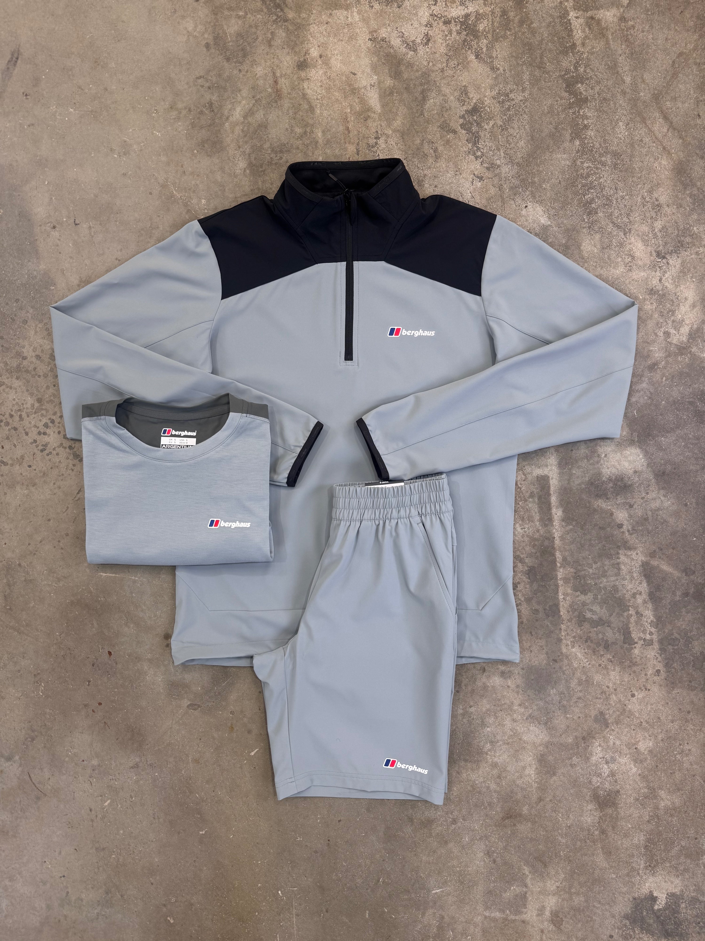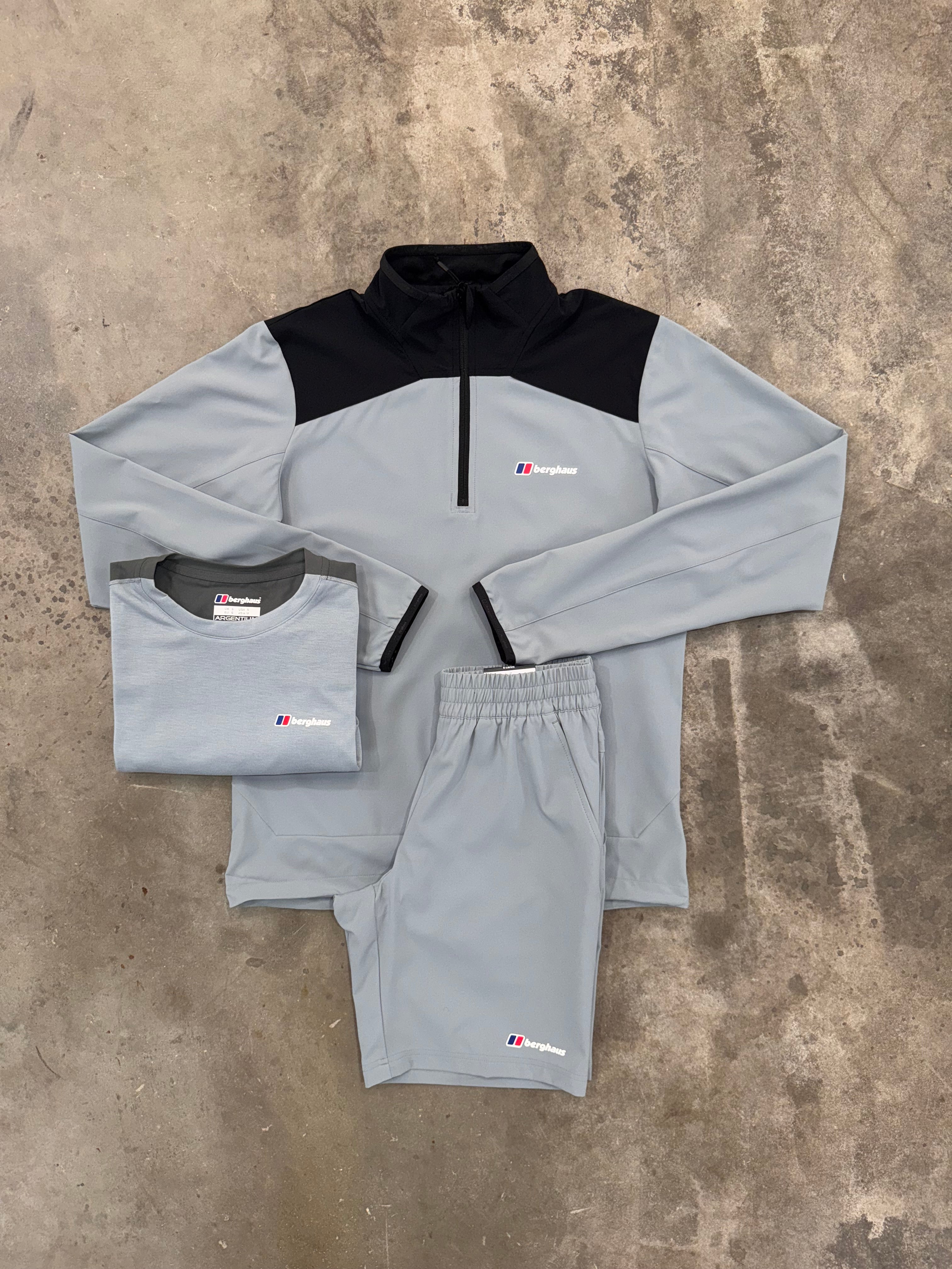 BERGHAUS TERRAIN TREK GREY 3 PIECE SET - QUARTER ZIP / T SHIRT / SHORT