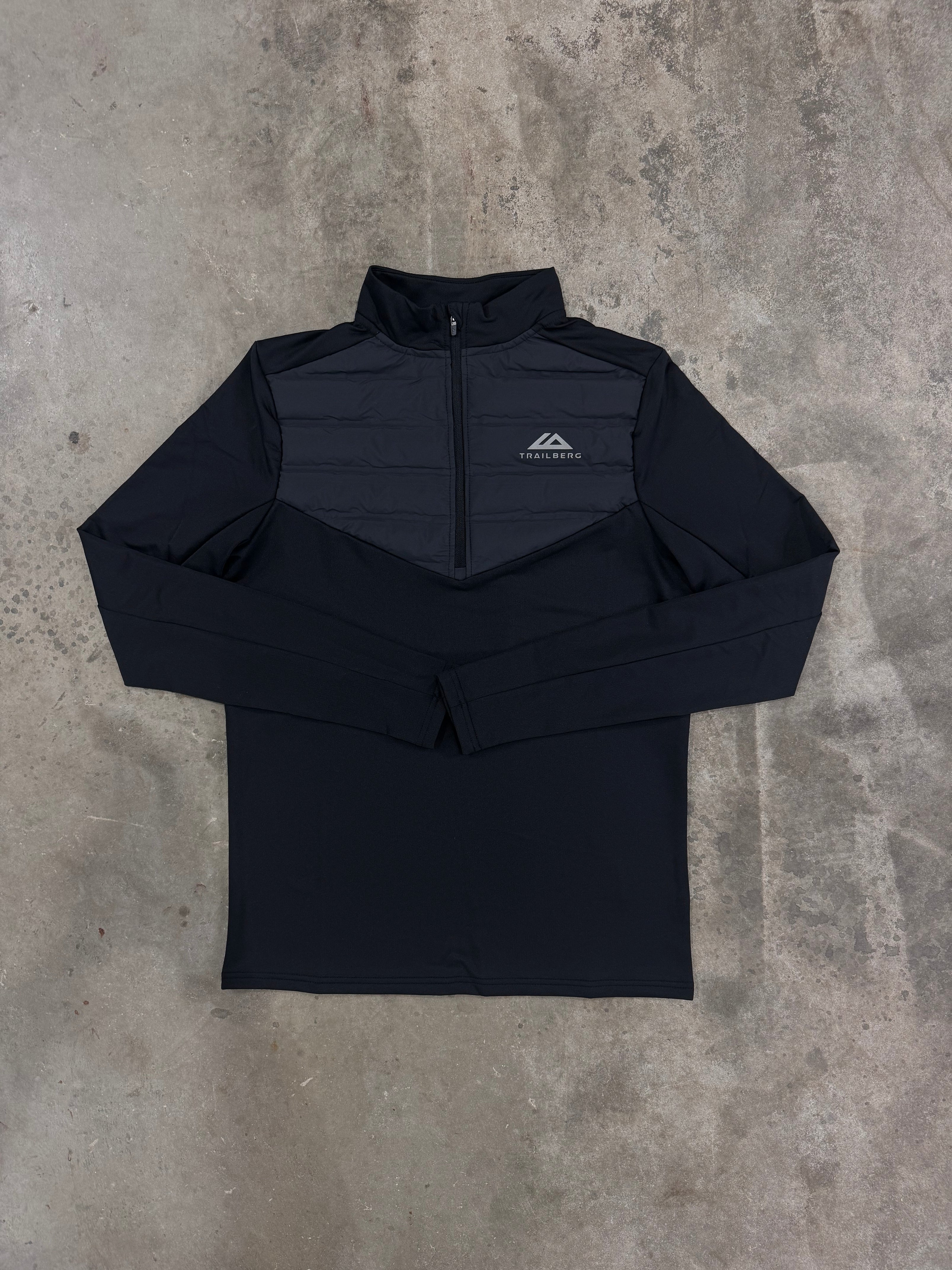 Elevate your running experience with our Rhine Hybrid Quarter Zip, featuring a quilted chest panel for your warmth. Stay warm on the go with thumb holes on both sleeves.