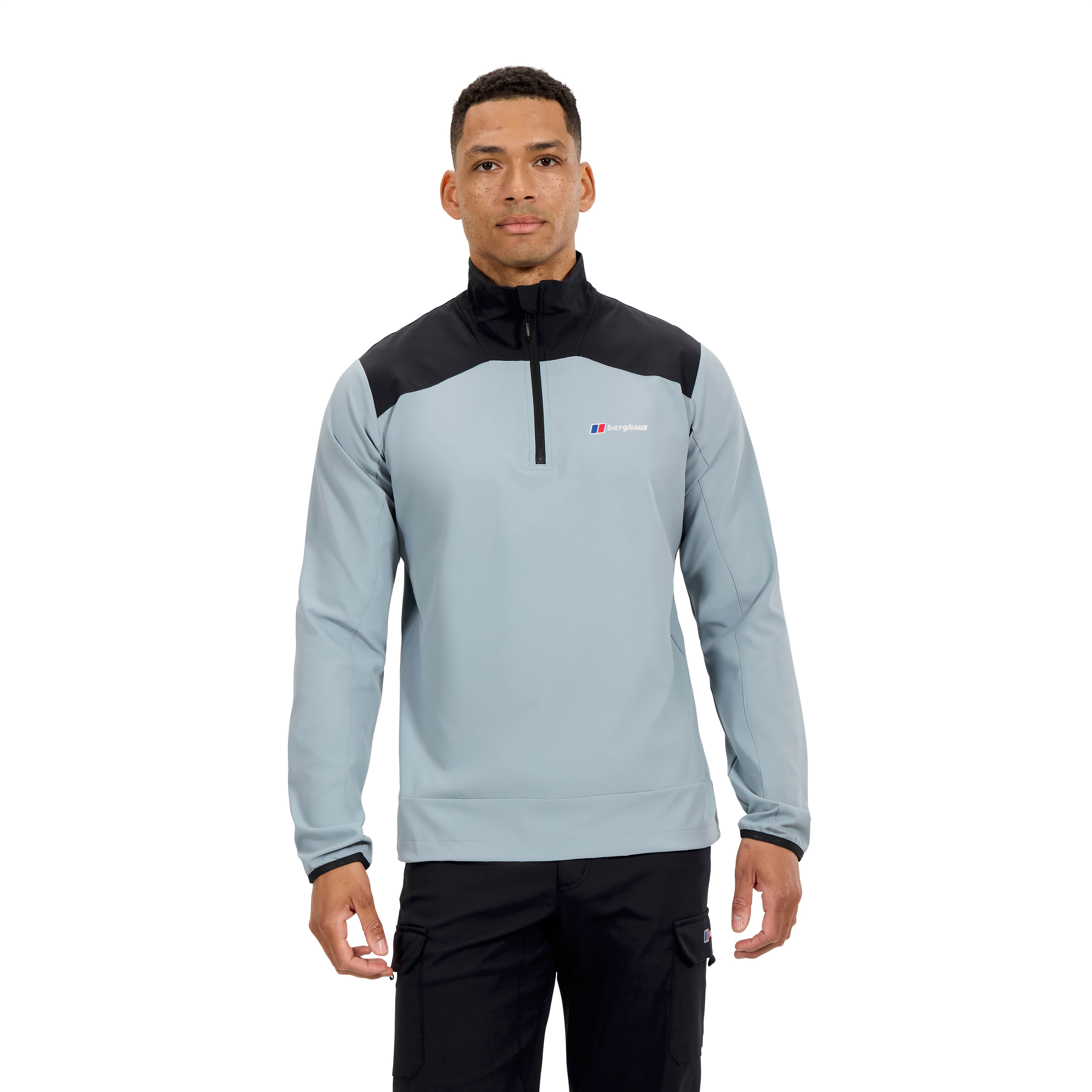 Berghaus Terrain Trek Half Zip Jacket In Grey is a lightweight pullover jacket in a colour block design. A half zip fastening at the neck with a stand up collar which features a branded trim and the signature Berghaus logo printed on the reverse. An additional logo is printed on the left of the chest. Elasticated trim on the long sleeves with an adjustable toggle hemline.