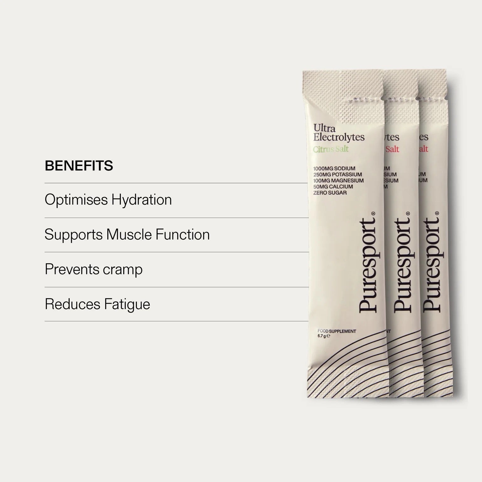 Puresport's Ultra Electrolytes Citrus Salt is designed for athletes and active individuals seeking optimal hydration during exercise. This sugar-free electrolyte formula delivers a precise ratio of key minerals like sodium, potassium, magnesium, and calcium, supporting fluid balance and preventing dehydration. The raspberry salt flavour provides a refreshing taste without compromising the high dose of sodium essential for performance.